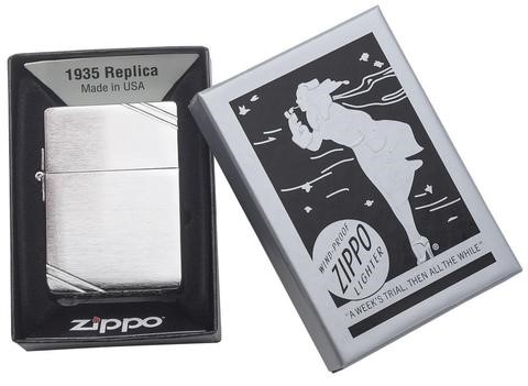 Зажигалка ZIPPO 1935 Replica Brushed Chrome 1935 от официального дилера Zippo в Грозном. Вы можете дополнительно заказать гравировку, которая подчеркнет Вашу оригинальность и придаст памятность статусному подарку.